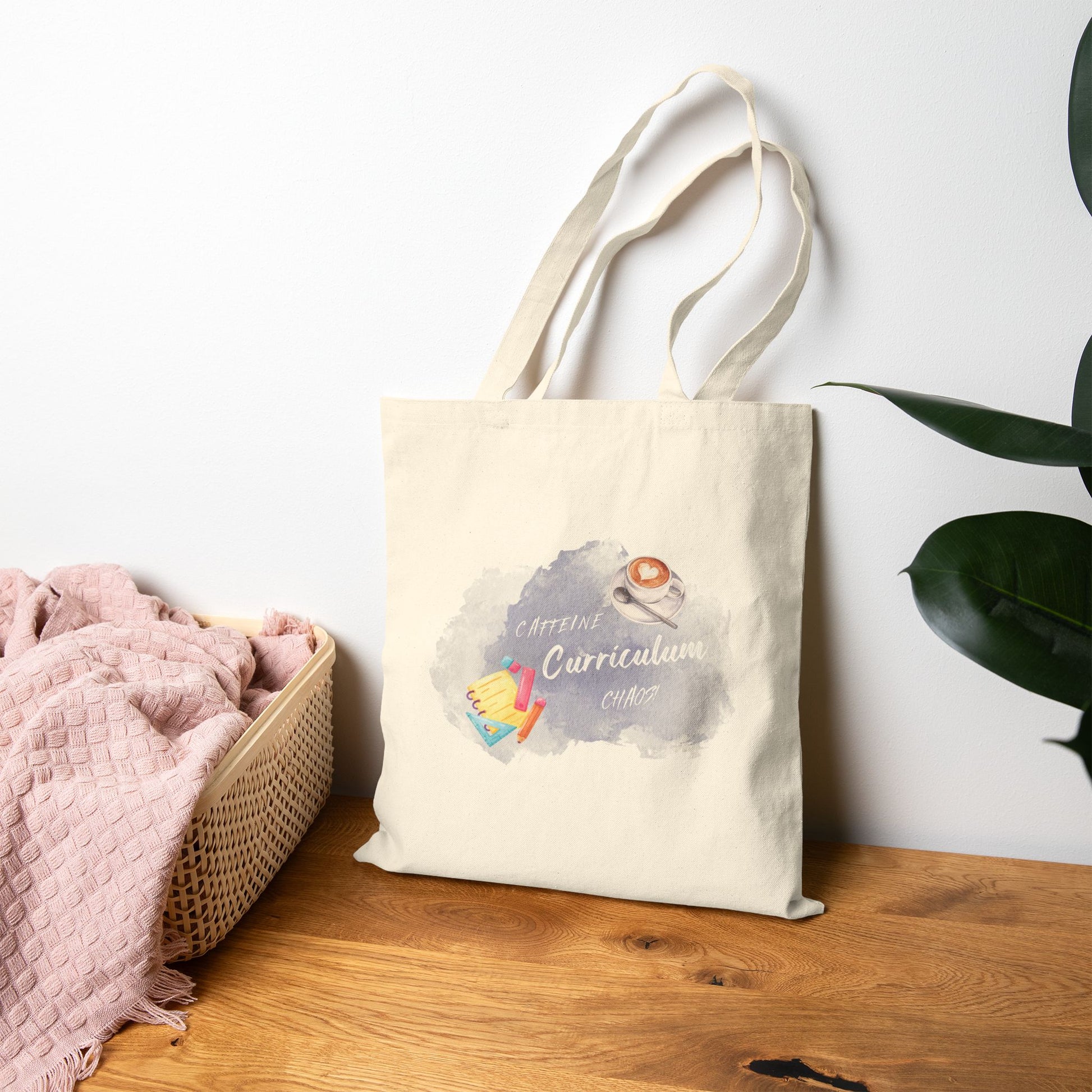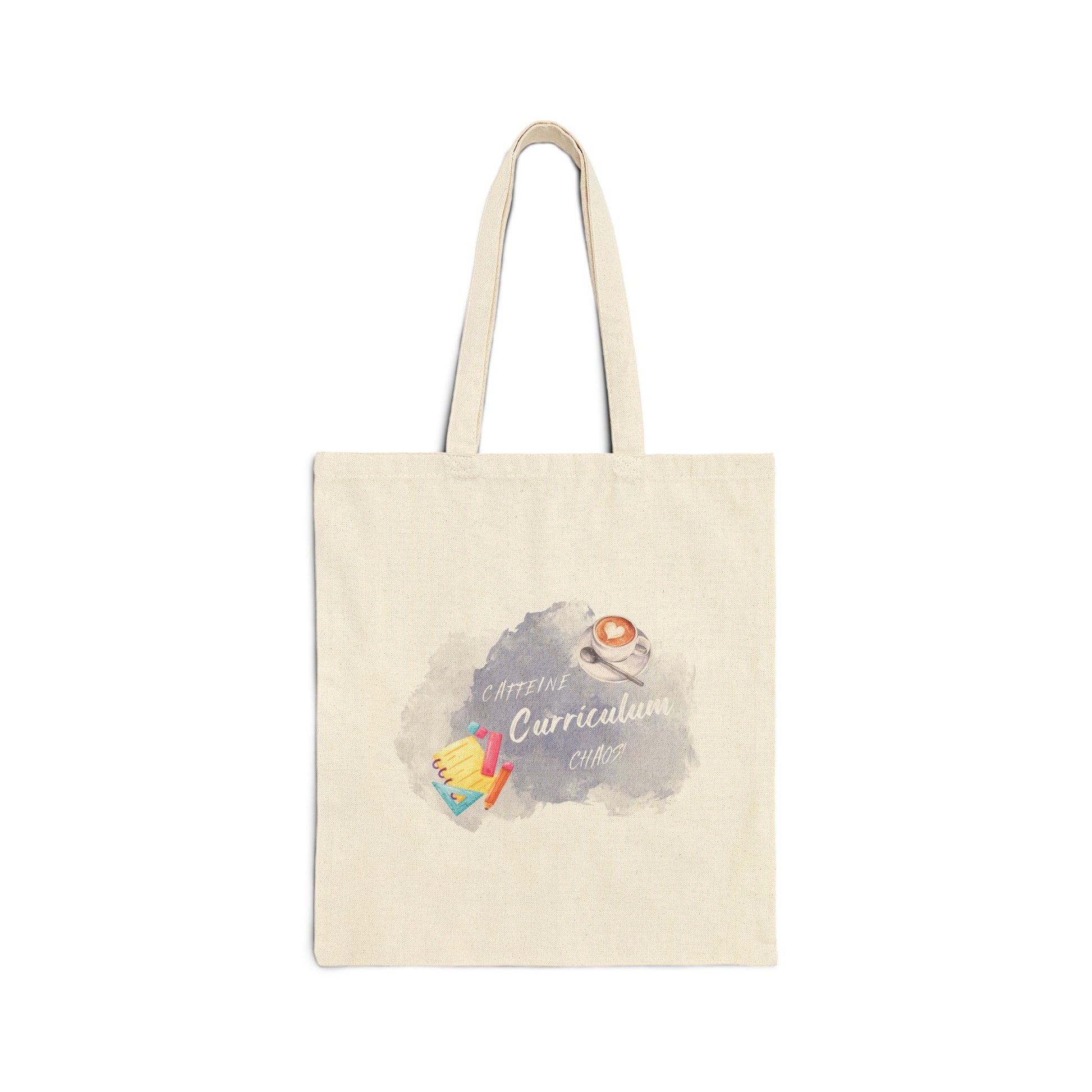 Caffeine Curriculum Chaos Cotton Canvas Tote Bag with a Whimsical Design for Teachers, Perfect for Back to School, Eco-Friendly Shopping, Beach Days, Gifts